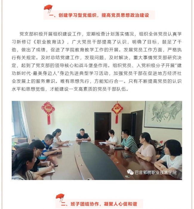 上一条: 以党建工作为引领 推动党建工作和业务发展双促进双提高---党政办党支部先进事迹材料