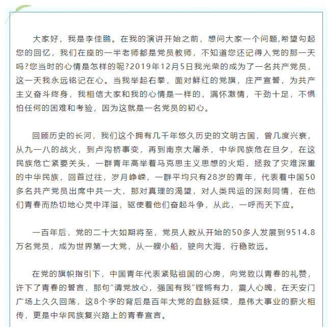 上一条: 青春献礼二十大 强国有我新征程 |青春心向党 奋进新征程