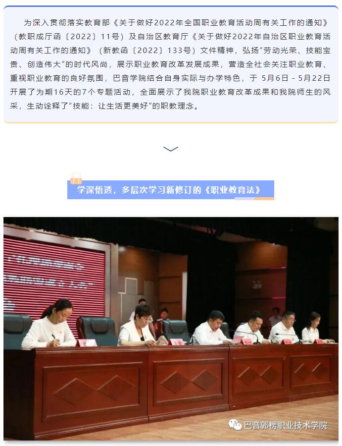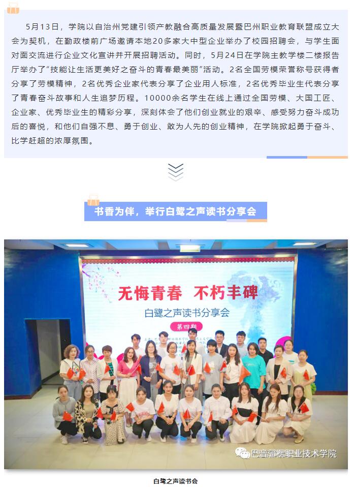 上一条: 党建引领产教融合 访企拓岗促进就业---巴音学院党政办党支部与天成西域党支部共同举办“党旗映天山”主题党日活动