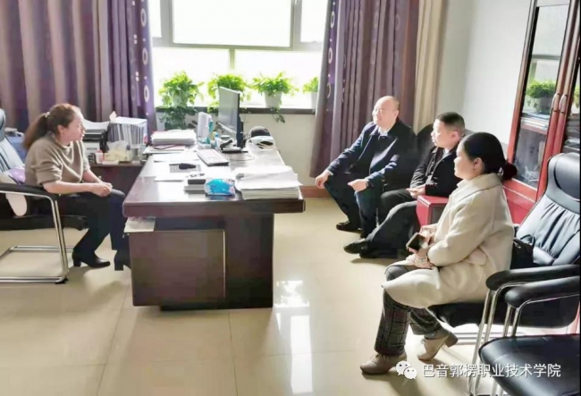 学院党委委员、教务处处长张敏与中交新疆交通投资发展公司常务副经理石建刚洽谈学生实习就业事宜