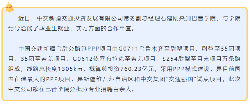中交新疆交通投资发展公司常务副经理石建刚与商务与旅游学院洽谈学生实习就业事宜