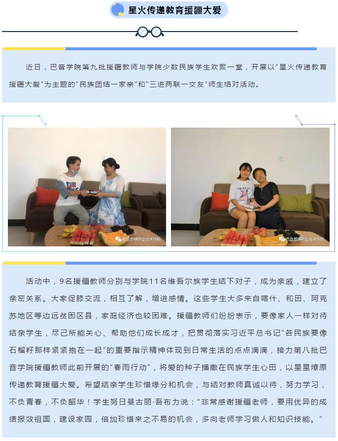 下一条: 【党旗映天山】巴音学院召开自治区“组团式”精准支教教师座谈会