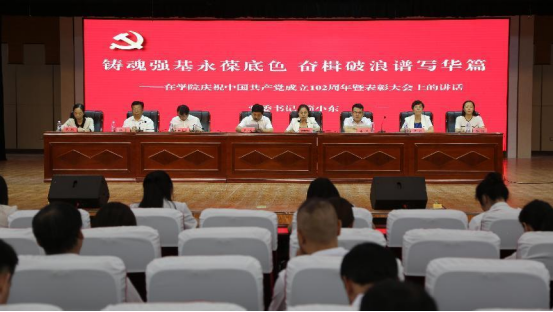 图为:“忠诚担当强党性 争先进位建新功”学院庆祝中国共产党成立102周年暨表彰大会