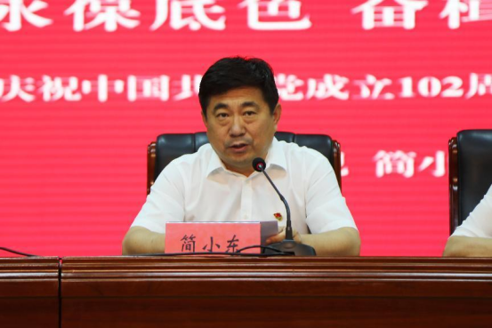 图为:党委书记简小东同志讲话