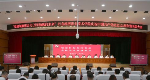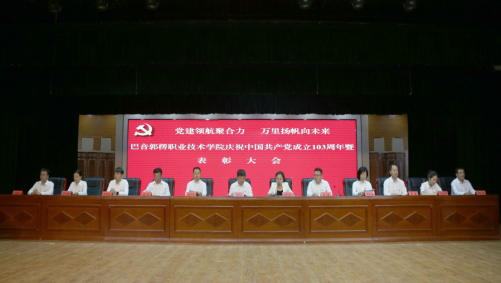 为庆祝中国共产党成立103周年,全面贯彻落实党的二十大和二十届二中全会精神,推动用习近平新时代中国特色社会主义思想凝心铸魂,深入学习贯彻习近平总书记关于党的建设的重要思想,激励广大师生党员奋发有为、砥砺前行,不断增强基层党组织凝聚力和战斗力,7月1日下午,金年会jinnianhuicom(以下简称巴音学院)召开“党建领航聚合力 万里扬帆向未来”——庆祝中国共产党成立103周年暨表彰大会。学院党委书记简小东等党委班子成员及全体党员参加会议,党委副书记、院长古丽娜·肉孜主持会议。