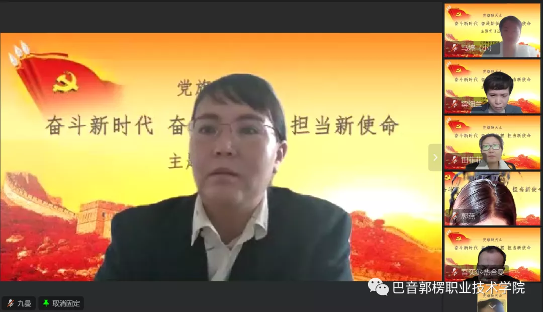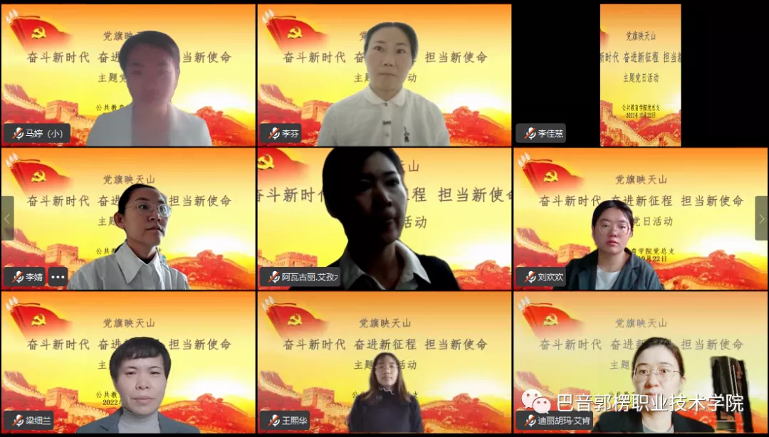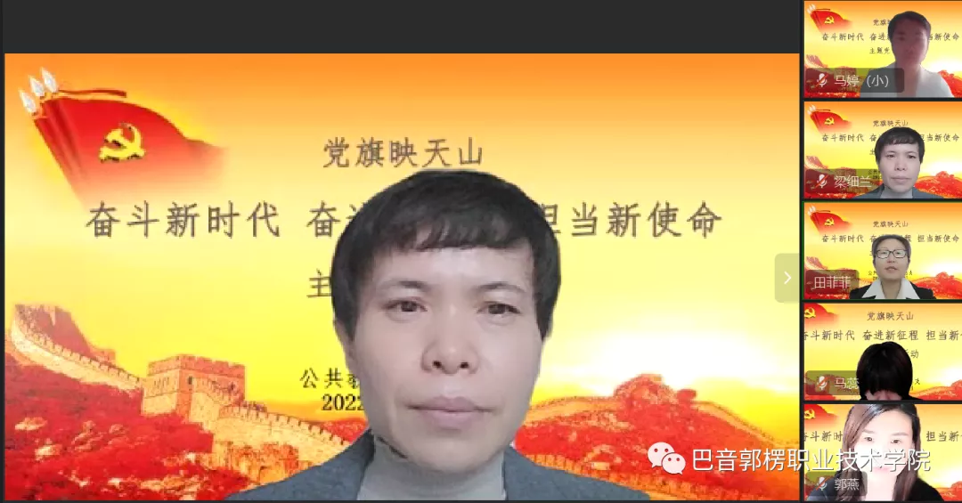最后,梁细兰同志指出,党的二十大明确宣示党在新时代新征程上举什么旗、走什么路、以什么样的精神状态、朝着什么样的目标继续前进。党的二十大报告是我们党团结带领全国各族人民在新时代新征程坚持和发展中国特色社会主义的政治宣言和行动纲领。认真学习宣传贯彻党的二十大精神,是当前和今后一个时期的首要政治任务,我们要立即行动起来,迅速掀起学习宣传贯彻党的二十大精神热潮,带着信念、感情、使命学,真正做到学深悟透、融会贯通、真信笃行,紧紧围绕“五个牢牢把握”,深刻领悟“两个确立”的决定性意义,增强“四个意识”、坚定“四个自信”、做到“两个维护”,在党的旗帜下团结成“一块坚硬的钢铁”,心往一处想、劲往一处使,勇担“为党育人、为国育才”的光荣使命,立德树人,为新疆社会稳定和长治久安培养爱国爱疆担当奉献的时代新人。进一步强化党建引领发展的观念,把学习贯彻党的二十大精神与优质校建设、教学诊断诊断与改进、教育教学、疫情防控、样板党支部评估验收、年终绩效考核工作有机结合起来,推动党建与教育事业发展深度融合、一体推进,用高质量党建引领高质量发展,以实际行动践行二十大精神。