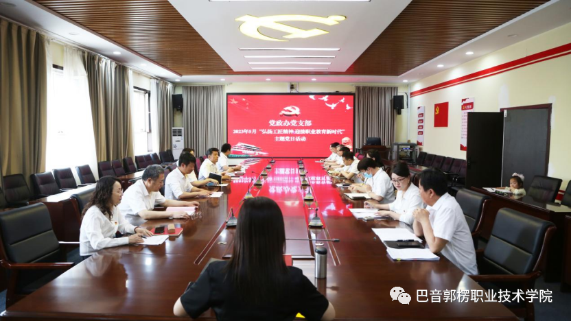 为深入学习贯彻习近平新时代中国特色社会主义思想,立足职业教育,聚焦理论学习和实践运用,着力提升党建工作活力。5月19日,党政办党支部在勤政楼二楼视频会议室组织开展了以“弘扬工匠精神 迎接职业教育新时代”为主的的五月份“党旗映天山”主题党日活动,内容丰富、形式多样。活动由学院党委委员、党政办公室主任、工会主席、党政办党支部书记、蔡虹教授主持,党政办党支部全体党员、入党积极分子、发展对象参加。