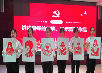 传媒学院学前教育专业学生达丽亚·木胡亚运用翻转课堂模拟教学,把老师们当作小朋友,用深情并茂、通俗易懂地语言向大家讲述了雷锋的故事。同学们展示了有关雷锋的剪纸作品。