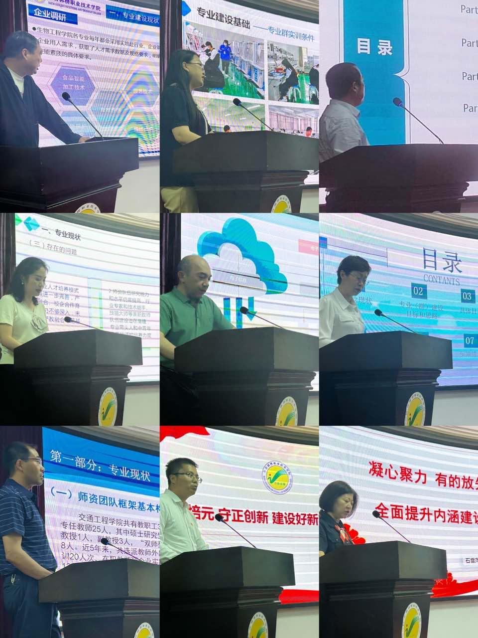 各二级学院书记、院长围绕专业(群)人才培养模式创新、课程教学资源建设、教材建设与教法改革、教学团队建设、实践教学基地建设、技术才能平台建设和社会服务等方面的现状及存在问题,专业(群)建设目标和思路、建设内容及措施、建设进度及资金预算等方面展开,对标专业建设,牢抓自身命脉,对二级学院的问题作出了深度的剖析。本次论坛也邀请了马克思主义学院和公共教育学院的书记就课程建设、课程改革、师资团队建设、课程思政建设做出了汇报。十一个院系,历时5个多小时,汇报人们用自己的诚意带着满满的干货让到场的每位参会者都受益良多。