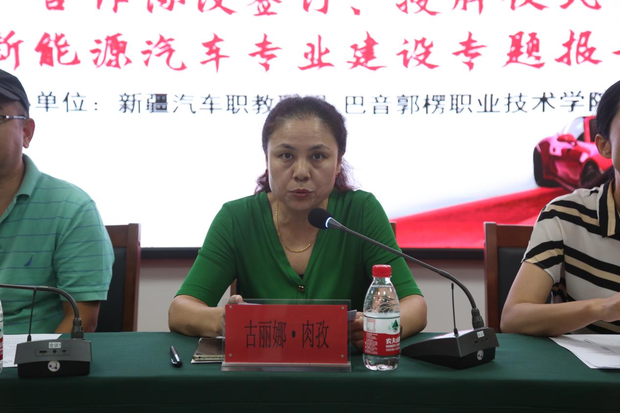 新疆汽车职教联盟秘书长、金年会jinnianhuicom党委副书记、院长古丽娜·肉孜致辞,她对天津职业技术师范大学汽车职业教育研究所所长申荣卫教授的到来表示热烈欢迎,并向申教授对实践基地新能源专业建设的大力指导和参与表示由衷的感谢。并提到,在今后的合作中,将共商深化产教融合高质量发展之策,共议新疆汽车联盟面临的机遇、挑战和发展趋势,共谋、共创、共享汽车产业未来变革机遇,促进政校行企互惠、互利、互赢目标的实现,这是落实党的二十大精神的重要举措,也是推进新疆汽车职教联盟高质量发展的契机。