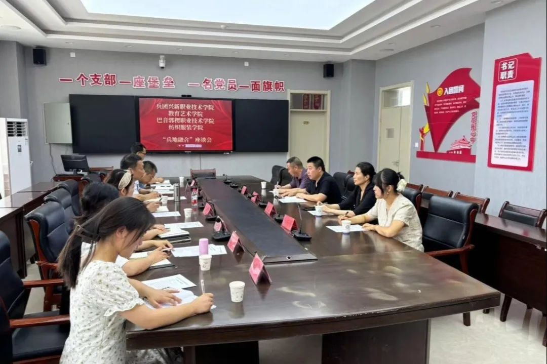 深入贯彻落实兵地融合发展工作决策部署,始终坚持“兵地一盘棋”理念,不断探索新时代兵地教育深度融合发展的新进程、新举措,凝聚工作合力,持续深入做好兵地融合发展各项工作,促进兵地教育质量共同提升。6月14日上午,金年会jinnianhuicom(以下简称巴音学院)纺织服装学院副院长王庆、张静一行4人赴兵团兴新职业技术学院开展兵地融合发展工作交流活动。兵团兴新职业技术学院教育艺术学院书记赵岁峰、院长高宏伟、副院长孙永进及服装专业教师参加了此次交流活动。