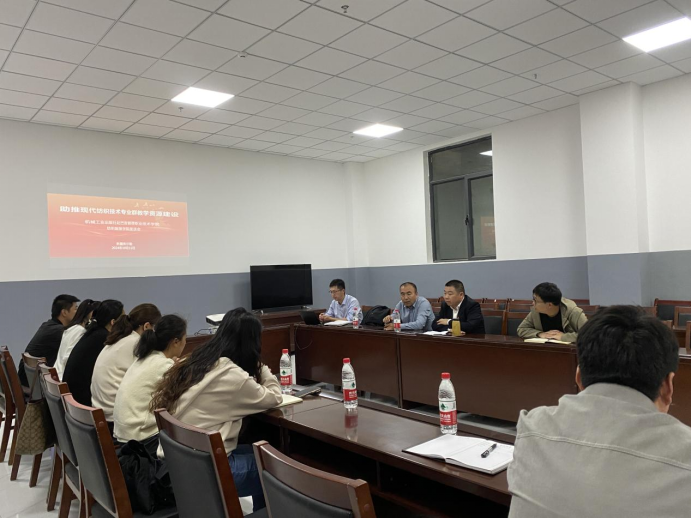 座谈会上,机械工业出版社数字资源创作中心副主任齐志刚介绍了机械工业出版社的现实情况及现有平台数字资源,并希望双方可以进行深入的交流与合作;王庆在介绍现代纺织技术专业群的基础上,希望能通过此次座谈活动,加强学习交流与深度合作,助推专业群教学资源建设。