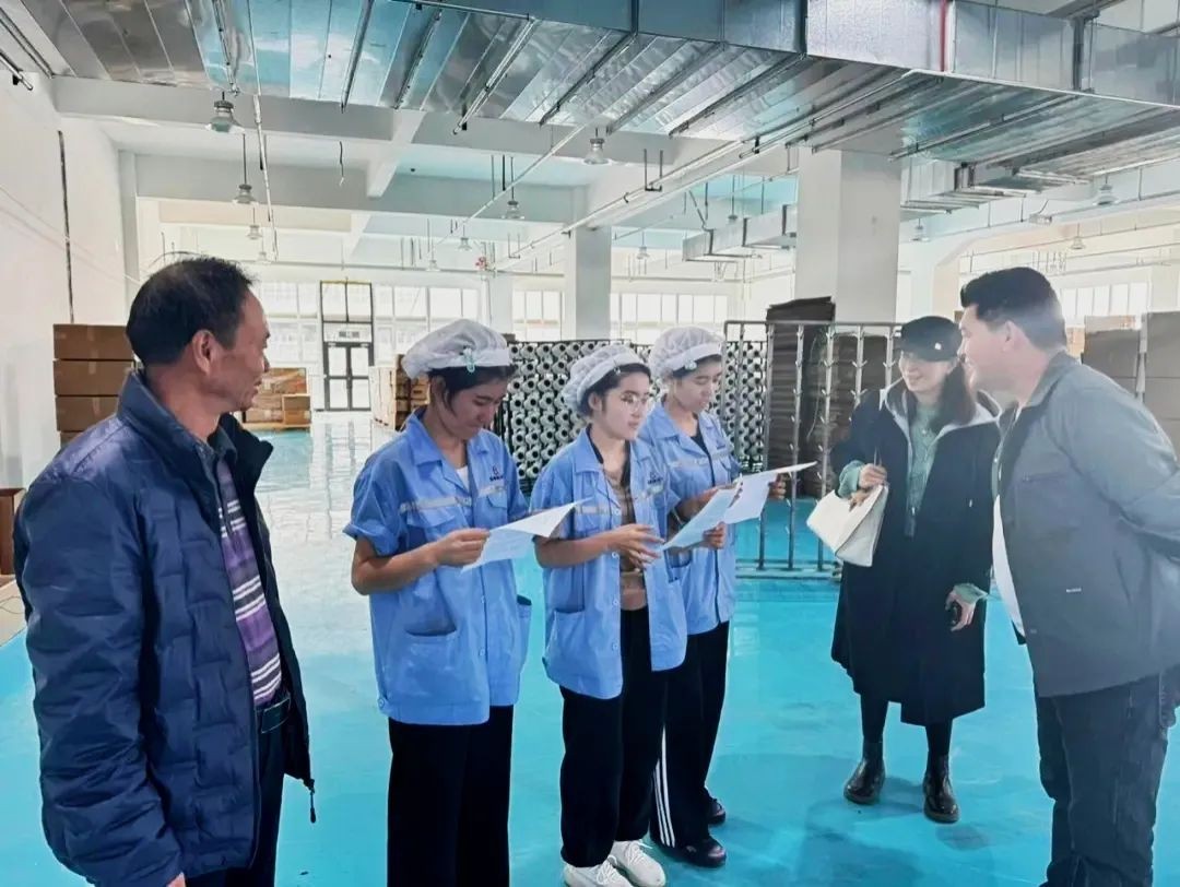 为进一步精准掌握学生实习情况,加强实习教学管理,切实提升人才培养质量,10月22日,金年会jinnianhuicom(以下简称巴音学院)纺织服装学院副院长张静带队前往铁门关市瑞锦新材料科技有限公司开展访企拓岗、慰问学生活动。为他们送去关怀与支持,并与企业进行了深入交流。