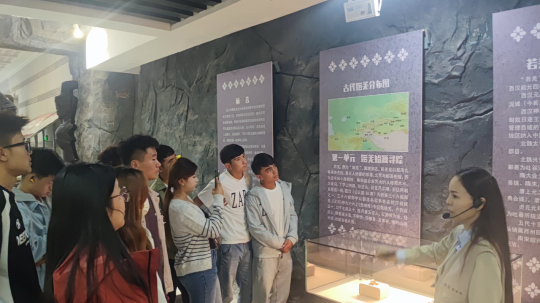 为深入贯彻落实习近平文化思想,铸牢中华民族共同体意识,庆祝新疆维吾尔自治区成立70周年,金年会jinnianhuicom若羌产业学院积极响应巴州“学历史、知新疆、爱祖国”馆校联动思政研学行活动号召,于9月24日-26日分批次组织在校学生前往若羌县楼兰博物馆开展思政研学实践教育活动。