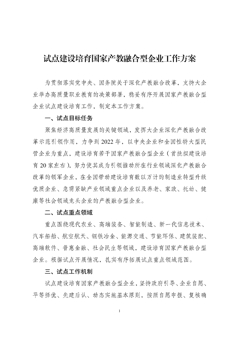 上一条: 关于印发国家产教融合建设试点实施方案的通知〔2019〕1558号