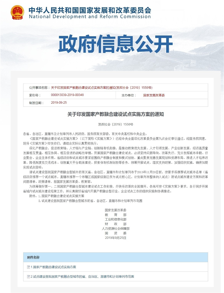 上一条: 关于印发国家产教融合建设试点实施方案的通知〔2019〕1558号——附件一.国家产教融合建设试点实施方案