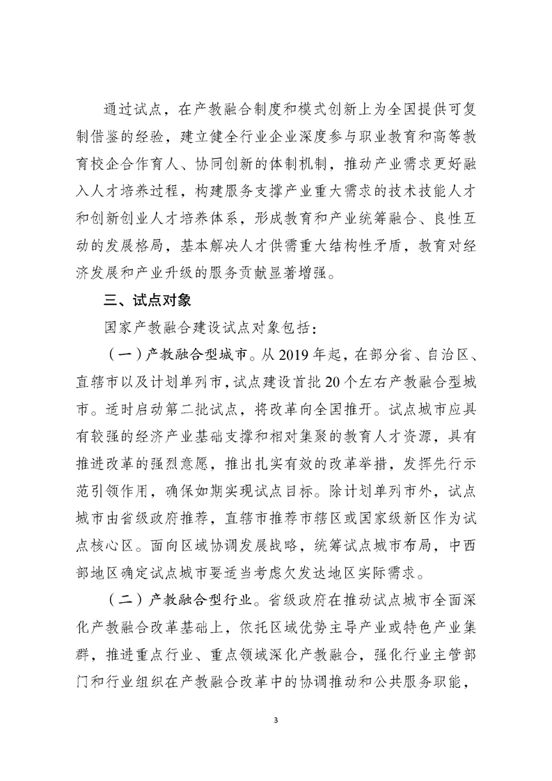 上一条: 关于印发国家产教融合建设试点实施方案的通知〔2019〕1558号——附件二.试点建设首批国家产教融合型城市的省、自治区、直辖市和计划单列市范围