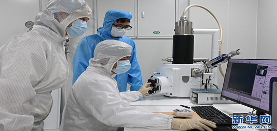 在硅光子人才培养与技术创新中心,学生使用仪器进行芯片的表面观察。新华网发(孙凯芳 摄)