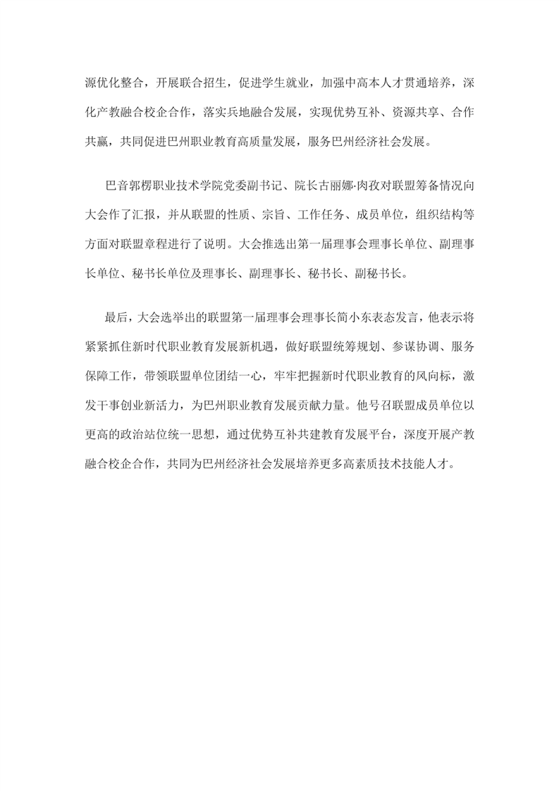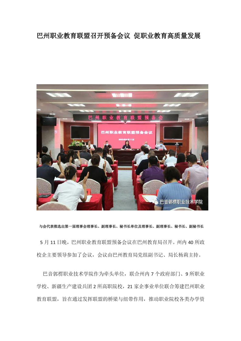 上一条: 自治州党建引领产教融合高质量发展暨巴州职业教育联盟成立大会召开 全州职业院校推行“校企合作、订单培养”技能人才培养模式