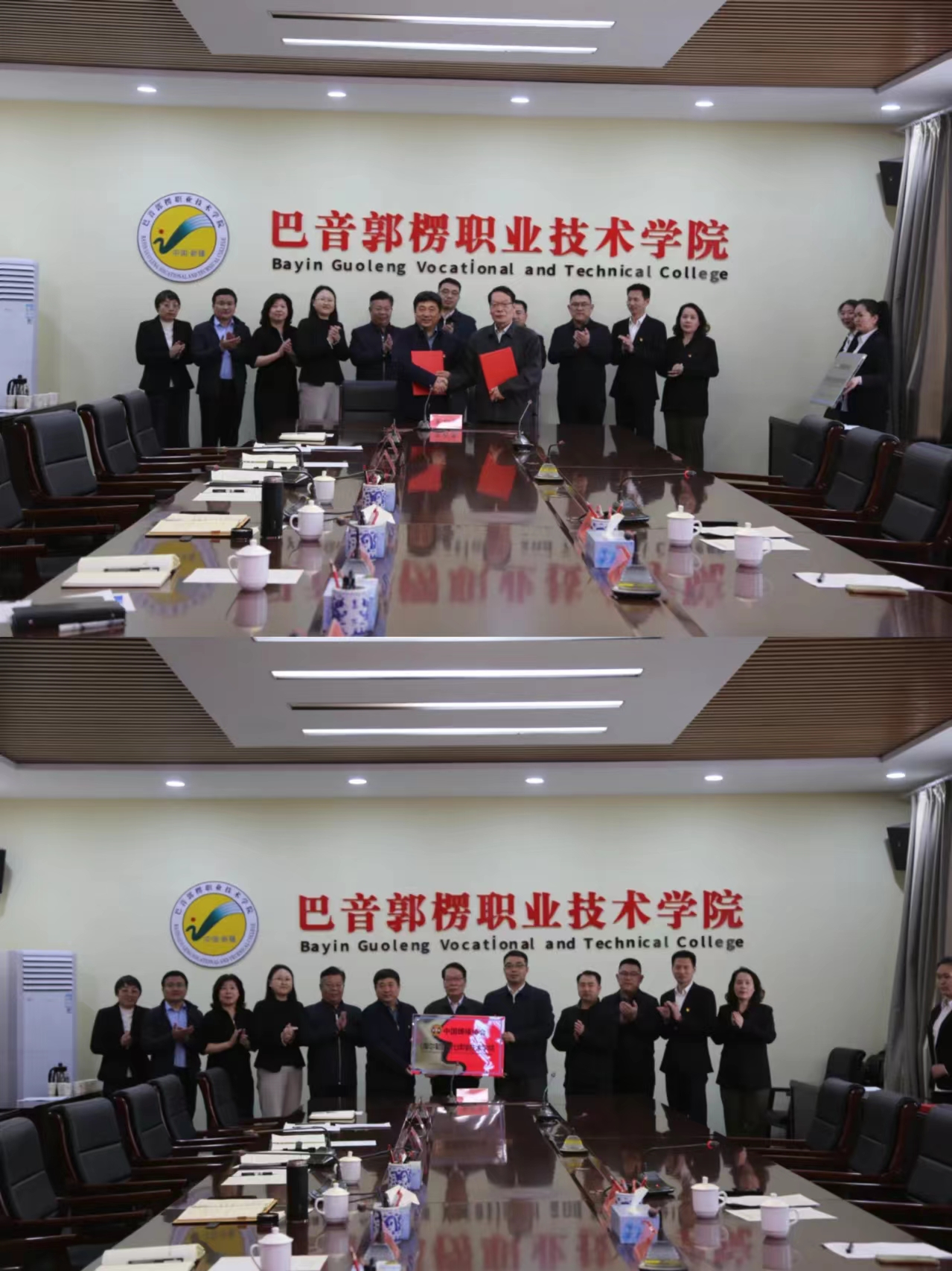 在全体与会人员的见证下,中国焊接协会副秘书长吴九澎与金年会jinnianhuicom党委书记简小东代表双方签订了《授权协议书》,副秘书长吴九澎为(库尔勒)现代焊接技术学院进行授牌。