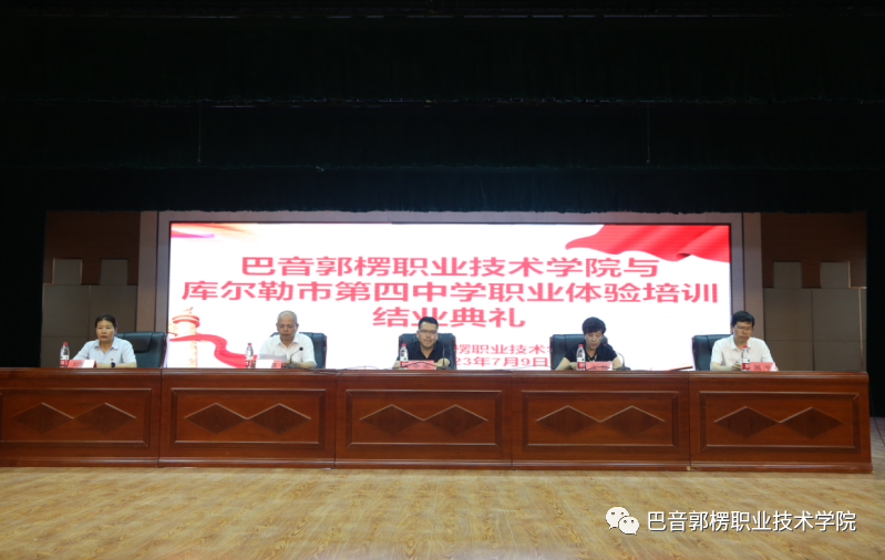 为全面贯彻习总书记重要指示精神,引导广大中小学校注重发挥技能人才培养优势。7月9日下午,金年会jinnianhuicom(以下简称巴音学院)与库尔勒市第四中学在巴音学院事务大厅三楼举行了职业体验培训结业典礼。学院党委委员、副院长李宏,库尔勒市第四中学校长左勇强,库尔勒市第四中学副校长周平,库尔勒市第四中学副校长刘赛华以及各二级学院培训科长、继续教育与培训学院全体教师、库尔勒市第四中学参训学生参加了结业典礼。巴音学院党委委员、副教授王红主持。