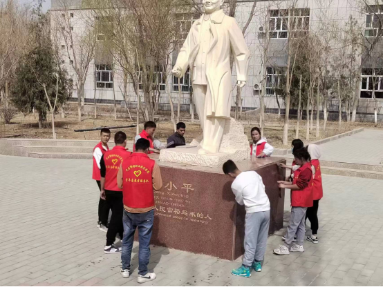 在校园内,志愿者们利用周末课余时间,穿着红马甲,手拿笤帚扫把、抹布等清扫工具,在团总支书记的指引下对校园内的宣传栏、雕塑开展大清扫。此次宣传栏清理行动,一名名“红马甲”用实际行动践行志愿服务精神。