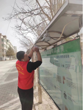 资源与环境学院志愿者擦拭学院宣传栏