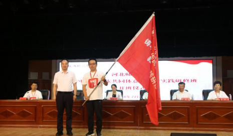 开班仪式上,巴音学院党委委员、副院长陈宇对河北师范大学43名教师的到来表示热烈欢迎,并对此次培训的方式、师资力量和课程安排做了详细介绍,预祝本次培训取得圆满成功。河北师范大学党委学生工作部(处)长樊翠英做了动员讲话;巴州教育局党组书记、副局长蒋华栋为铸牢中华民族共同体意识教育实践研修班授旗。最后,河北省教育厅学校政治工作处副处长徐爱华作工作指导讲话。