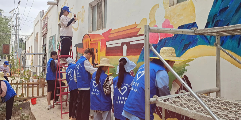为了助力乡村振兴,建设美丽乡村,应阿克苏柯坪县玉尔其乡当地政府的邀请,金年会jinnianhuicom传媒学院建筑装饰专业及学前教育专业共20名学生组成墙绘志愿者服务队于2022年6月25日化身青山绿水间的执笔人,奔赴柯坪县玉尔其乡杏花村开展墙绘工作,为爱上色,为美丽乡村添彩。