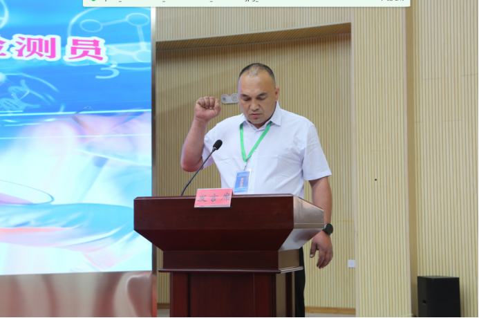 活动中,裁判长柳旭伟宣读竞赛规则;参赛选手代表穆合塔尔·列提普、裁判员代表卜三平分别进行了现场宣誓。