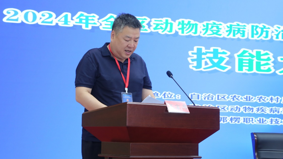 自治区农业农村厅党组成员、二级巡视员张加群在讲话中指出,今年是全面贯彻落实党的二十大精神,进一步推进乡村全面振兴的关键之年,做好兽医工作对稳住“三农”工作基本盘具有特殊重要意义。面对新形势、新挑战、新任务,全区广大兽医工作者使命在肩、责任重大,只有不断增强进取意识,加强技术和能力锤炼,才能更好地服务于畜牧兽医工作大局。希望本次技能大赛能为广大兽医工作者搭建一个开拓视野、增长才干、相互学习的新平台,创建一个展示实力、展现形象的新窗口,培养造就一批理论扎实、技能精湛的技能人才。