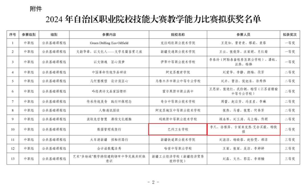 7月18日,自治区教育厅发布了2024年自治区职业院校技能大赛教学能力比赛获奖信息公示。