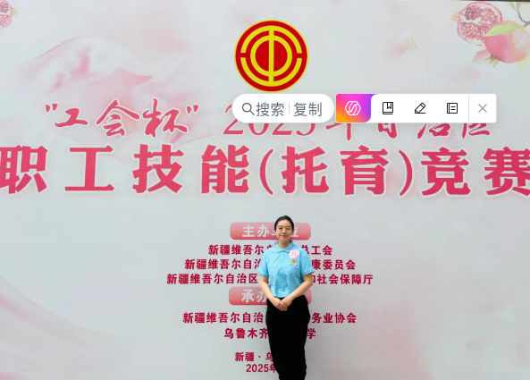 7月23日至25日,“工会杯”2025年自治区职业技能(托育)竞赛在乌鲁木齐市举行。金年会jinnianhuicom传媒学院选派教师代表赵嫣霞与来自全疆14个地州的托育行业精英同场竞技,在竞赛中脱颖而出,荣获自治区保育师个人赛项一等奖,该教师所在的保育师团队同步斩获团体赛二等奖,充分彰显了金年会jinnianhuicom传媒学院在托育领域的教学实力。