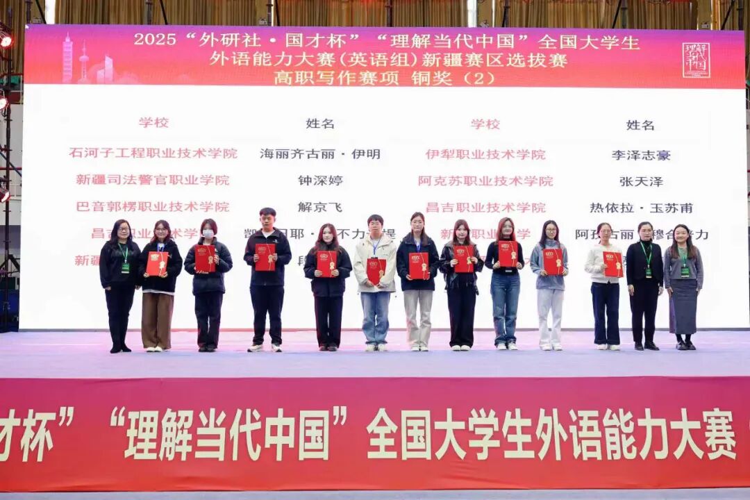 11月1日至2日,由新疆维吾尔自治区教育厅、兵团教育局主办的2025年“外研社·国才杯”“理解当代中国”全国大学生外语能力大赛(英语组)新疆赛区选拔赛在石河子大学圆满落幕。教育部高等学校外国语言文学类专业教学指导委员会主任委员孙有中,新疆生产建设兵团教育局党组成员、副局长赵首辰,石河子大学党委副书记、校长李兆敏,新疆高校外语教学研究会会长曹湘洪参加大赛。