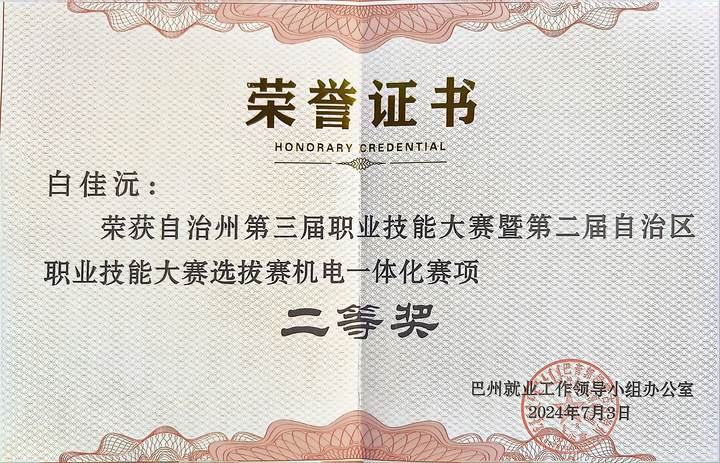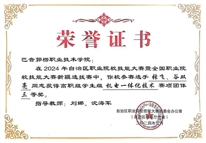图5 2024年技能大赛获奖证书