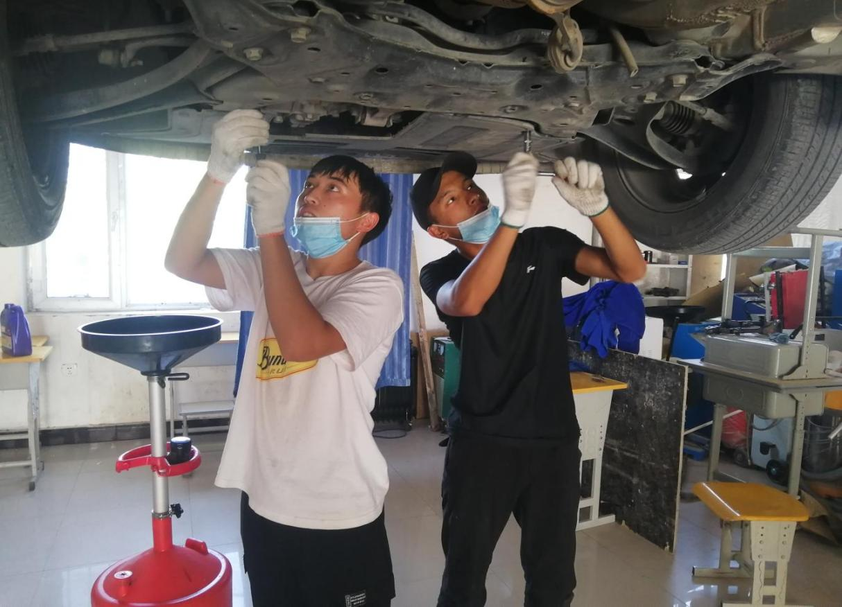 图5 专业学生在校内实训:底盘维修