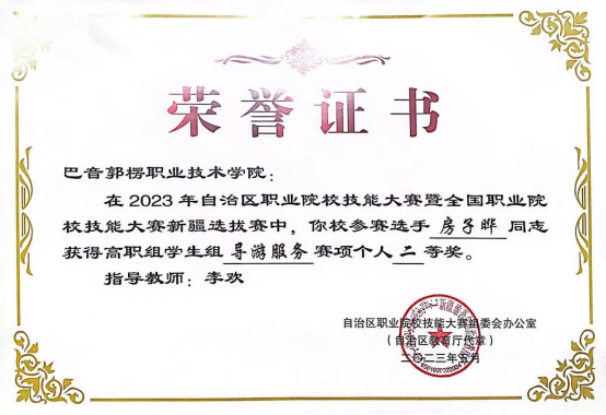 图11 旅游管理专业学生参加2023年自治区职业院校导游服务赛项获二等奖