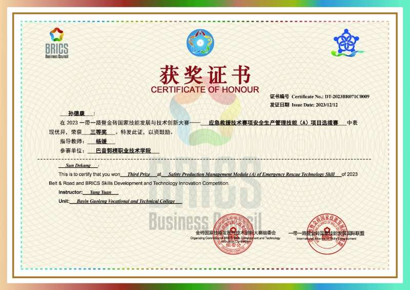 职业技能等级证书:化工总控工(中级)、化学检验员(中级)、初级急救员职业资格证、化工精馏安全控制、化工危险与可操作(HAZOP)、工业废气处理工、工业废水处理工、工业固体废弃物处理处置工、注册安全工程师、注册消防工程师、安全评价师、污水处理工